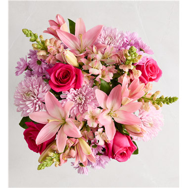 Thank Mom for a lifetime of comforting hugs with our Mother’s Embrace™ bouquet. Lovely pink and lavender blooms are hand-designed in a glass vase tied with a pink satin ribbon, creating a heartfelt expression of your feelings, whether you're celebrating Mother’s Day together or sending a smile from miles away.